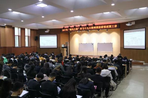我校副校长兼马克思主义学院院长苑芳江为“青马工程”高级研修班学员和习近平新时代中国特色社会主义思想研究会会员解读了党的十九大报告。相信各位学生干部在提升理论素养,扩宽工作视野方面有了新的收获和思考。二十世纪波澜壮阔的发展浪潮已经过去,十九大精神和科学发展观指引下的“中国梦”向我们指出了追求的方向,砥砺前行又五年,中国将迎来一片新天地。这千帆竞发,万壑奔流的时代固然激发我们“指点江山”的昂扬意气,但更需要同学们脚踏实地,默默无闻的奉献。希望同学们用行动践行十九大,助力民族复兴的伟大中国梦。