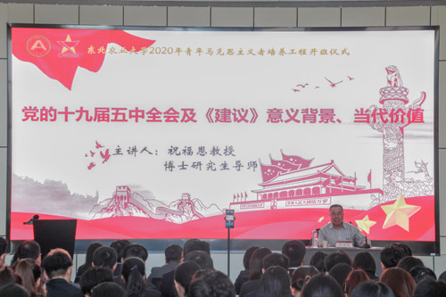 为全面贯彻落实习近平总书记关于青年工作的重要思想,按照共青团中央、教育部、民政部、农业农村部、国务院国资委印发的《关于深入实施青年马克思主义者培养工程的意见》有关要求,11月4日,校团委在梦想小镇大厅举办2020年东北农业大学“青年马克思主义者培养工程”培训班开班仪式。校党委副书记马宏坤出席仪式并讲话, 校学生工作处处长于兴业、招生就业指导处处长宋跃芬、马克思主义学院院长许静波、各学院团委书记、校团委全体成员、2020年青马工程全体学员、第八届研究生支教团全体成员、大学生“初心”讲师团全体成员、校级学生组织学生干部代表300余人参加开班仪式。2020年团校团干部培训班全体学员、各学院学生干部、团支部委员代表、院级团校学员通过腾讯会议和抖音平台观看直播,开班式由校团委副书记高天琦主持。