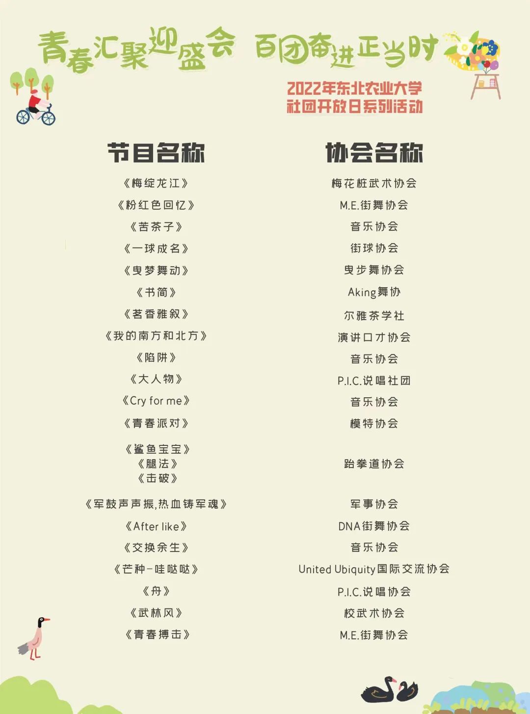 百花齐放、丰富绮丽的学生社团汇聚了东农校园文化的青春力量。为深入贯彻落实“共青团切实增强思想政治引领实效”的工作要求,促进学生社团更好培养同学兴趣特长,丰富学生文化生活,提高学生综合素质,引领青年学生坚定理想信念,为迎接党的二十大营造良好氛围,校团委特举办“青春汇聚迎盛会,百团奋进正当时”社团开放日活动。现就相关安排通知如下。