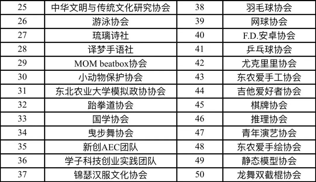 为进一步推进社团建设,强化社团管理,引导社团不断向规范化,有序化发展,营造积极健康的校园文化氛围,提高社团质量,丰富我校第二课堂体系建设。根据《东北农业大学学生社团联合会章程》和《东北农业大学学生社团考核办法》规定,校学生社团联合会对我校50家校级社团开展2022年度学生社团星级评定工作。经社团提交材料,校社联以及社团代表组成的测评小组进行初审、复审等环节,最终确定各学生社团星级。