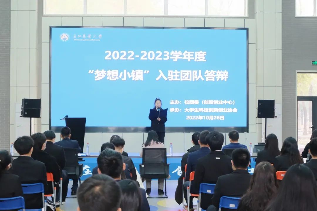 10月26日,2022-2023学年度“梦想小镇”入驻团队答辩会在“梦想小镇”连廊大厅举行。我校教务处教学管理科科长牛海燕、经济管理学院团委书记杨秀坤、创新创业中心专任教师赵兴隆、李德丽,创新创业训练指导中心主任孟繁美担任评委。