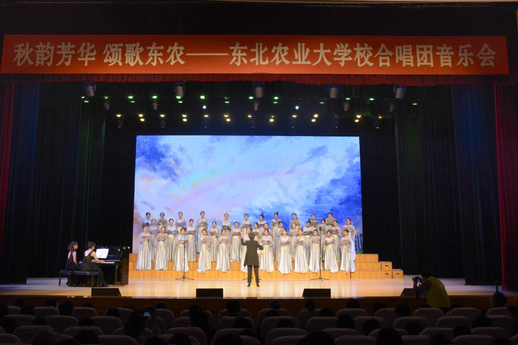 10月25日晚6点,由校团委主办的“秋韵芳华,颂歌东农”校大学生艺术团合唱团音乐会在音乐厅剧场举办。本次活动借乐声颂歌东农,歌颂祖国,让东农学子们在祝福祖国的同时感受到合唱艺术的魅力,一千余名师生共同观看了此次音乐会。