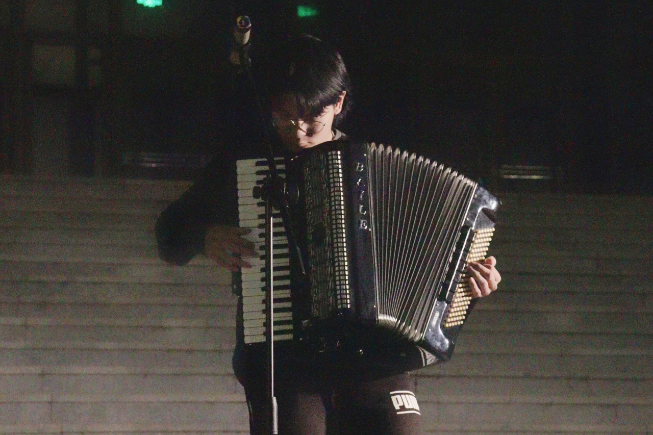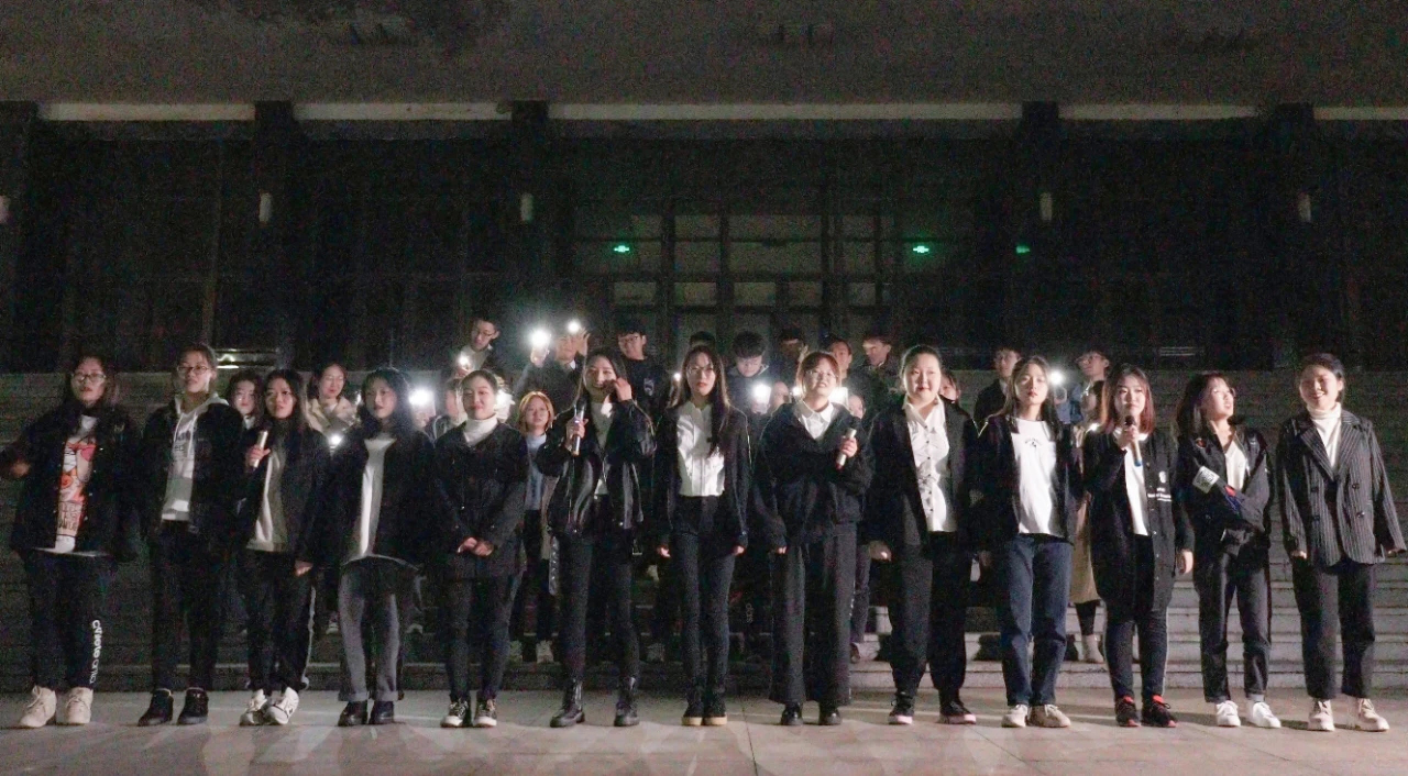 手中的灯光汇聚成银河,用歌声为同学们驱散深秋的寒意,《好像爱这个世界啊》为演出画上了圆满的句号。