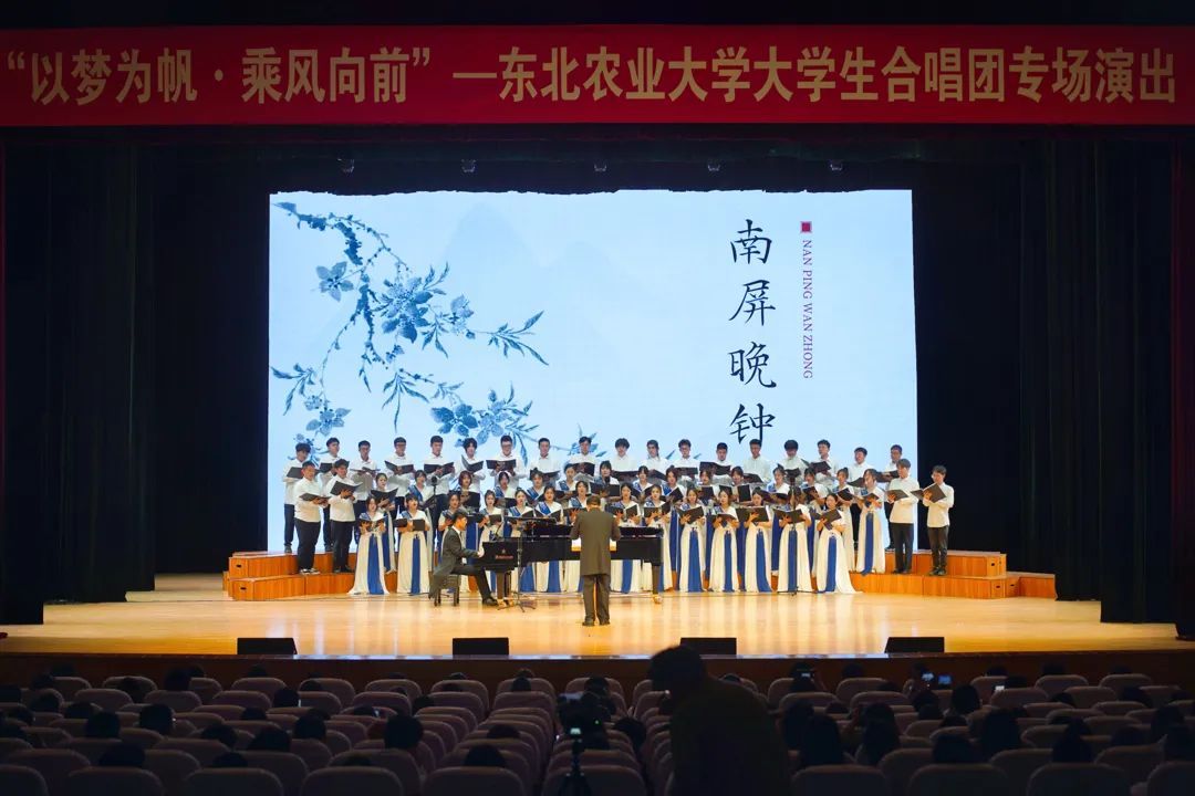 低眉春已逝,抬头夏伊始。为进一步丰富青年学生开展主题教育的形式内容,搭建学校美育多元平台,将审美意趣渗透进师生的校园文化生活之中,提升学生审美水平和人文素养,5月29日晚,“以梦为帆·乘风向前”大学生合唱团专场演出在音乐厅剧场举办,现场近700名学生共同观看演出,本场汇演通过“掌上东农”微信公众号进行同步直播,在线观看人数近万人。