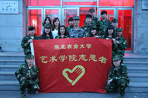 2014年5月10日至18日,新生军训开始。艺术学院的志愿者服务站开展了“情系军旅”的系列活动。艺术学院的志愿者服务站的成员和部分志愿者积极参加了此次活动,分别在音乐厅门训练场地和北十、北八新生寝室、校体育场进行志愿服务。