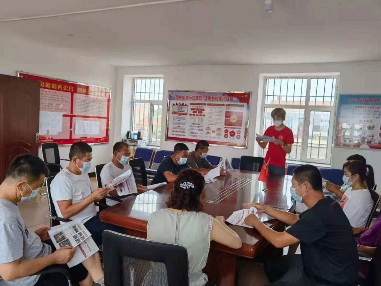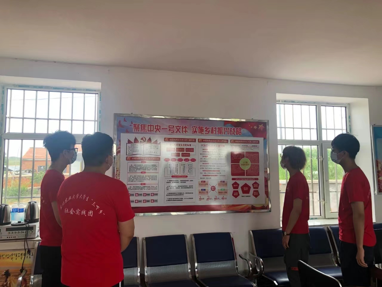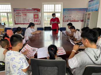 8月1日上午,新风村党委支部第一书记付有,为实践团成员讲述了当地各方面的情况,也提出了想要增加农民收入,改善村民生活环境,提高村民素质,争创文明村的意愿。书记强调,想要推动新风村发展,村民的理想信念教育,科学文化教育,民主法制建设是重中之重。同时他也表示村干部应当积极推动、配合宣讲活动,满足村民想要了解政治理论知识的愿望,从而加强农村思想道德建设,为农村物质文明和精神文明的发展提供动力。