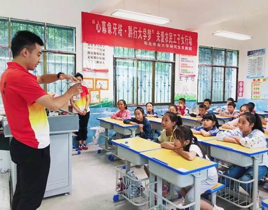 “心幕象牙塔·黔行大学梦”关爱农民工子女志愿服务项目在共青团东农业大学委员会的指导下,由东北农业大学研究生支教团于支教服务地黔南布依族苗族自治州龙里县城乡中小学启动实施并长期开展,以讲解、视频、对接线上志愿者、实地参观等形式向农民工子女及留守儿童群体介绍国内外高等学府,旨在树立其瑰丽的大学梦,让孩子们对未来有憧憬、有向往、对人生有更高的追求。
