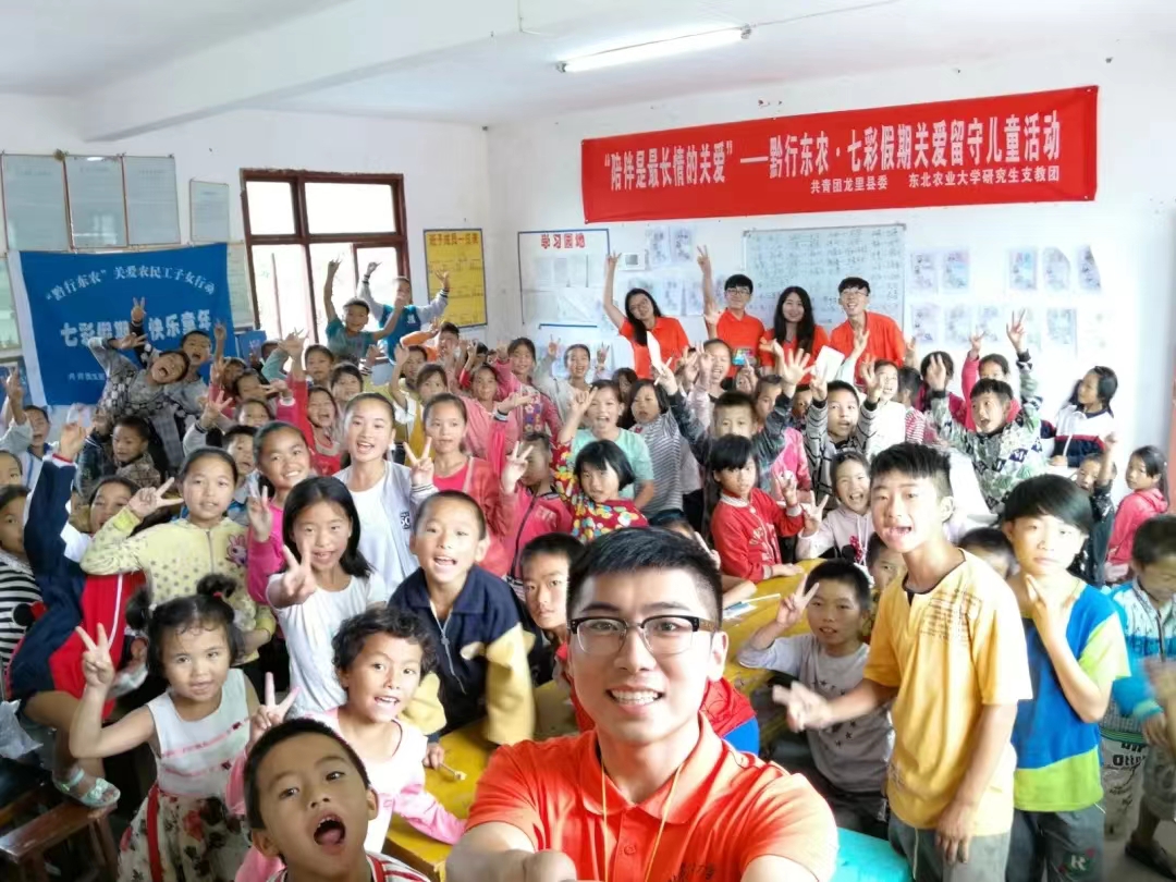 东北农业大学研究生支教团坚定不移以创建创新志愿服务品牌项目作为工作目标,不断努力将志愿服务活动常态化、项目化、品牌化,围绕一条主线、两个侧重,积极开展志愿服务工作。即以扎根基层、服务学生、关爱留守儿童为工作主线,以思想引领与关爱服务相结合、集中学习与长效辐射相结合为侧重点,形成了队内协同配合、队外不断辐射,吸引更多青年志愿者共同参与东农研支团志愿服务项目的工作态势,将志愿活动持续为项目,将志愿项目发展为品牌的工作格局。仅贵州龙里服务队在七年间累计开展志愿服务活动700余次,累计受益人数20000余人。贵州服务地志愿者针对当地农民工子女、留守儿童身心教育匮乏的现状,开展了“一城一名悦中国”、“心幕象牙塔”、“蓓蕾守护·关爱留守女童”等主题关爱留守行动,拓宽留守儿童视野,帮助留守儿童树立正确的人生观、价值观。