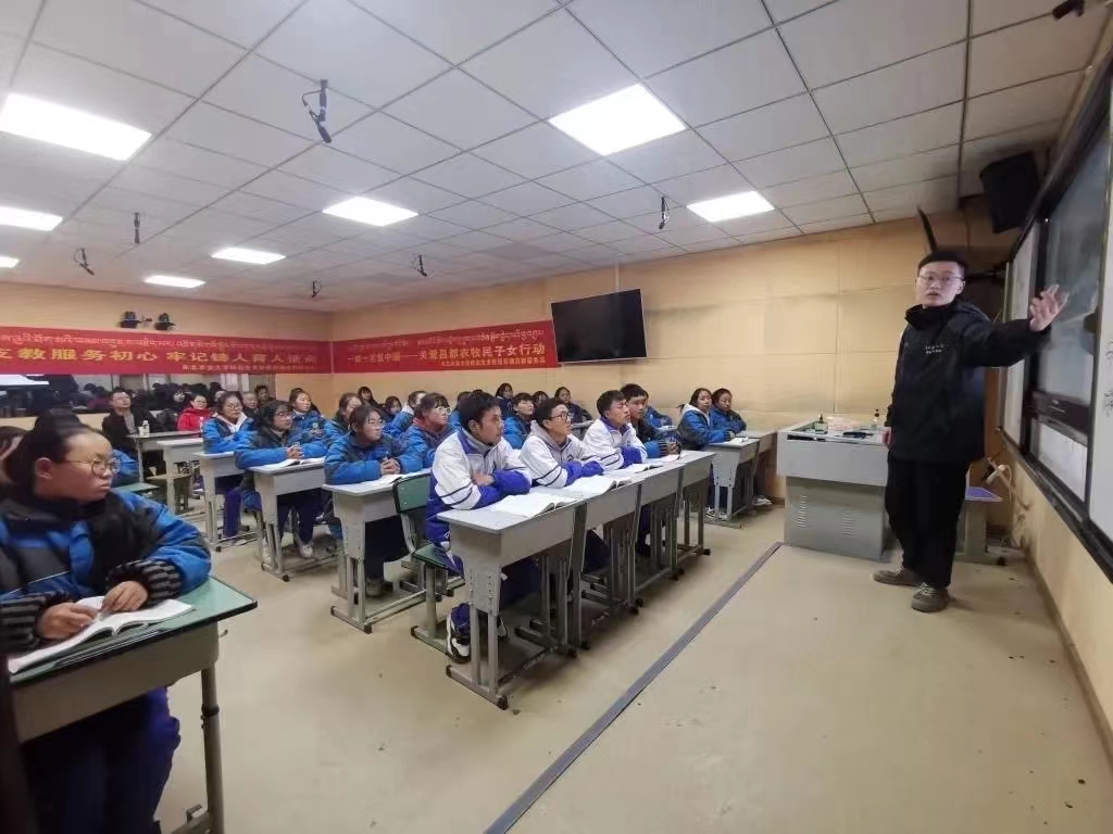 东北农业大学研究生支教团坚持“因地制宜,服务为本”的原则,成立党小组加强团队建设和管理。支教团成员抵达服务地后,第一时间与当地县委组织部联系,以最快速度完成党组织关系的转接工作。服务期内,定期开展民主生活会、专题组织生活会、特色党日等活动。党的十九大胜利召开后,支教团成员认真投入到十九大专题政治学习中,共参与政治学习百余场,积极参与“三进两联一交友”民族团结活动,与各少数民族学生结对子,交朋友。