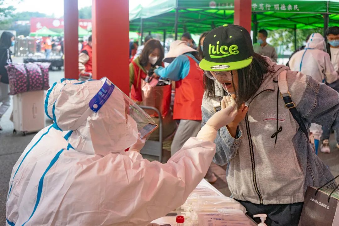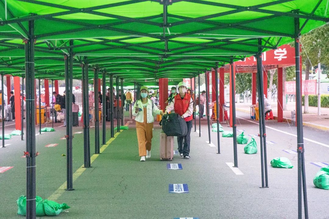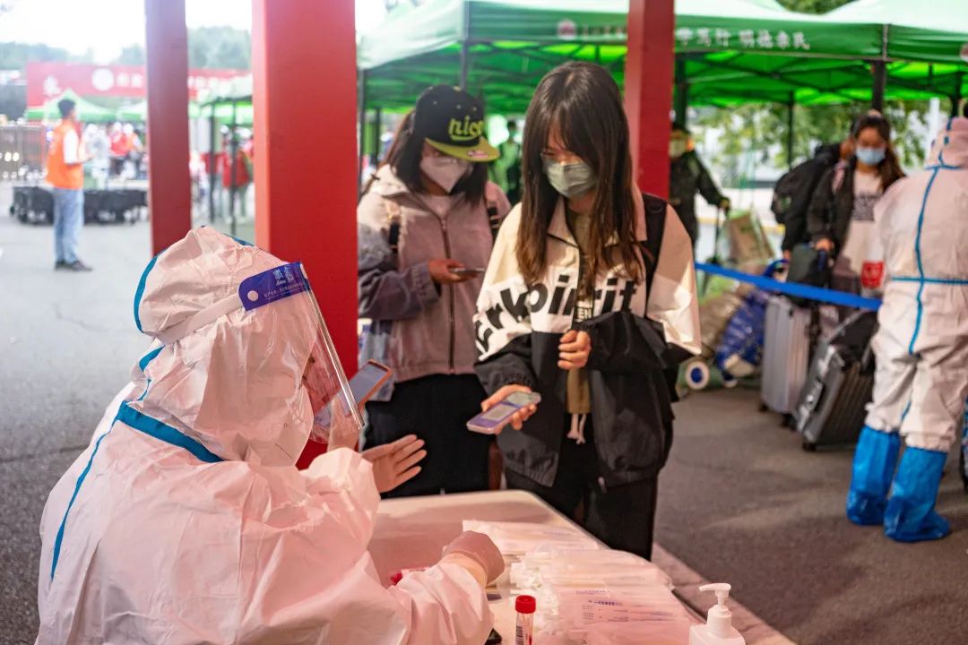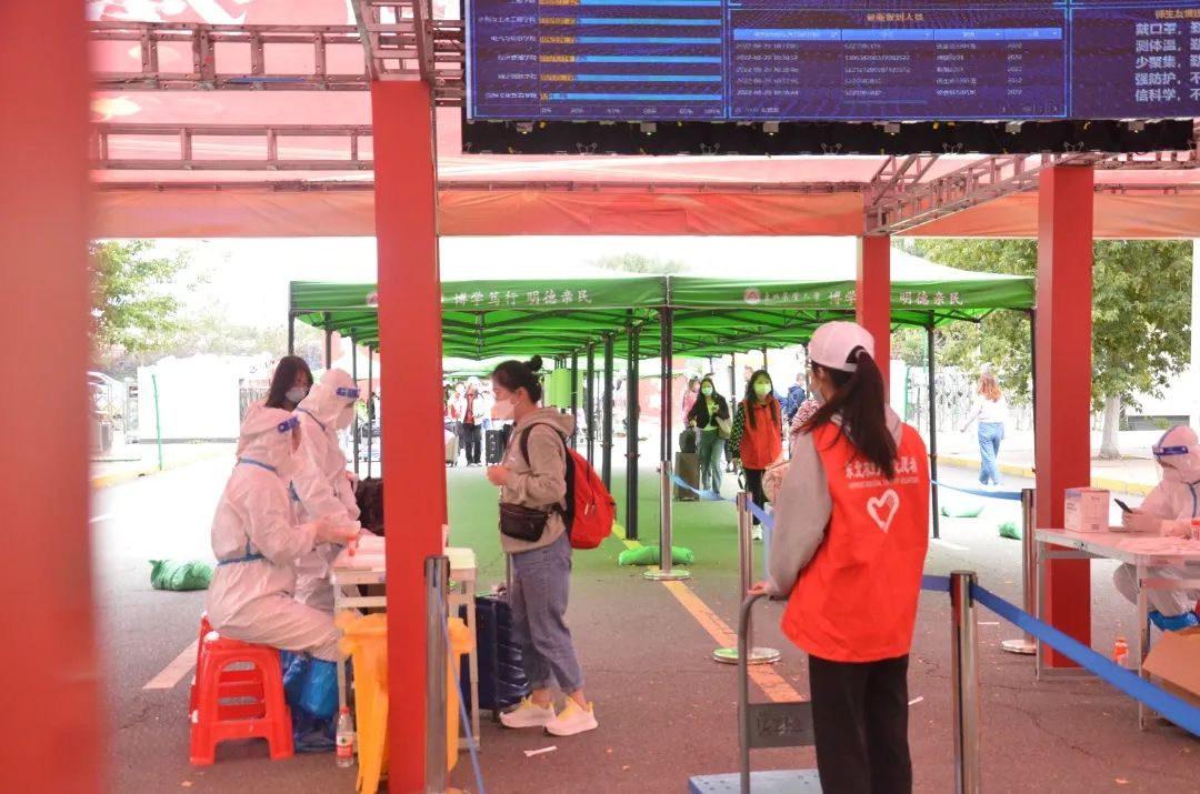 测温、消毒、核酸报告审查、引导新生扫描二维码。一项项工作细致入微,严格督促下,全力保证新生们的健康安全。
