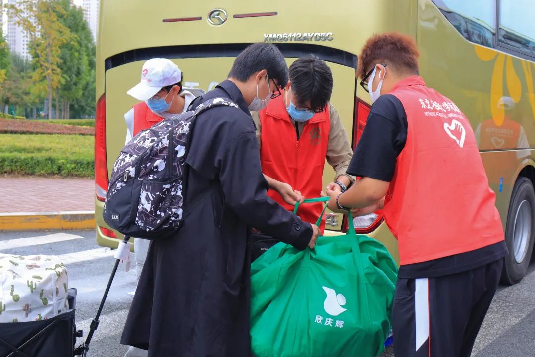 以“心”迎“新”,从新生下车的那一刻起,他们便热情洋溢,举牌子、喊院系、搬行李,确保每一位新生都可以顺利“回家”。