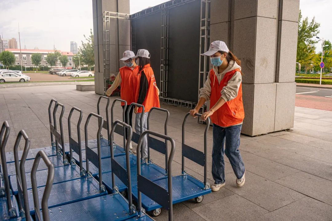 推着行李,他们在校园里来回穿梭——阴雨连绵,浇不灭他们的热情;辛苦劳累,只为减轻新生们的压力、带给新生们温暖。