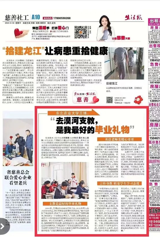 9月30日,《生活报》报道我校兴边富民计划研究生支教团事迹。
