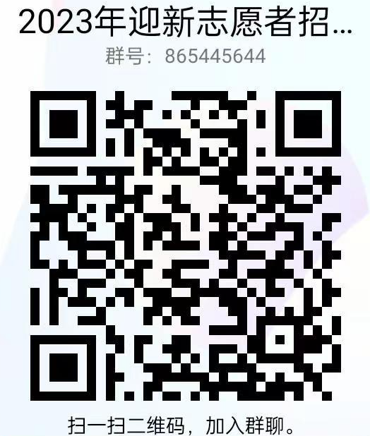 请有意参与迎新志愿服务活动的同学扫描下方二维码进入QQ群报名,相关信息将在群内通知发布。