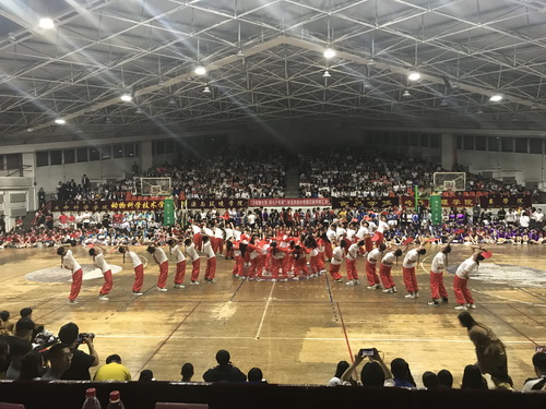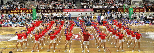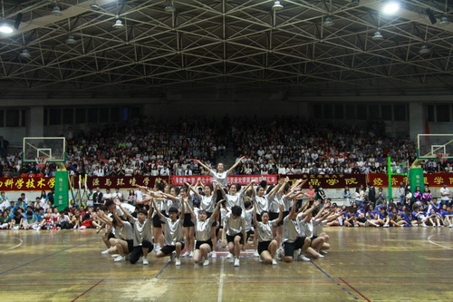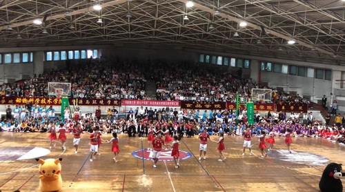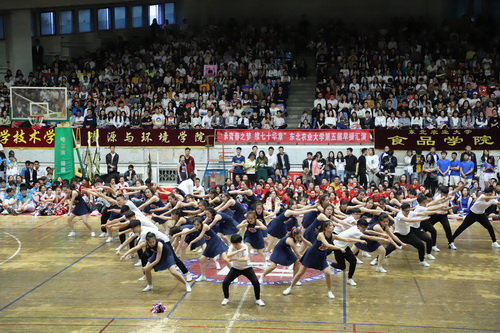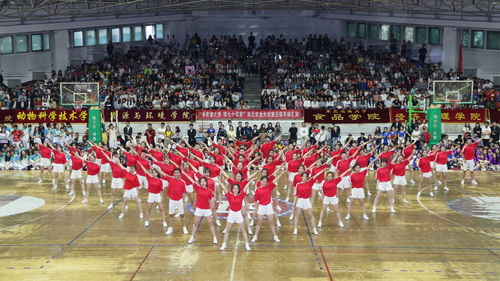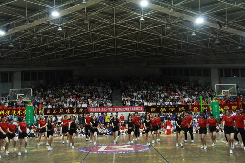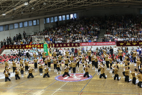 5月23日晚,我校在南区体育馆举行“承青春之梦续七十华章”第五届大学生早操汇演。本届早操汇演由校学生会主办,各学院学生会承办,早操汇演以迎接我校建校70周年校庆为主旋律,以响应共青团中央、教育部、全国学联关于深入开展大学生“走下网络、走出宿舍、走向操场”主题群众性课外体育锻炼活动的号召为主线,通过队列操与集体舞的组合形式,检验和巩固早操成果,丰富校园文化生活。汇演共有13个学院810名同学组队参加,2000多名师生现场观看了比赛。