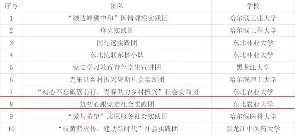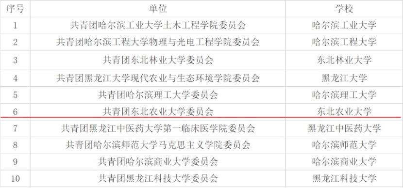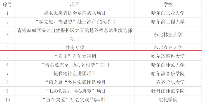 近日,团省委对在2021年黑龙江省大中专学生志愿者暑期文化科技卫生“三下乡”社会实践活动中表现突出的集体、个人和优秀项目进行了表彰。我校在设立的四个类别评选中均获表彰,获奖数量位居全省高校第一名。我校团委被评为社会实践活动“优秀单位”,动物科学技术学院“初心不忘砥砺前行,青春助力乡村振兴”社会实践团、食品学院“筑初心跟党走社会实践团”被评为“优秀团队”,“甘南专项社会实践活动”被评为“优秀项目”,校团委副书记高天琦、宣传教育科科长石波罗被评为“优秀个人”。其中,校团委、“初心不忘砥砺前行,青春助力乡村振兴”社会实践团、 “甘南专项社会实践活动”及“优秀个人”高天琦将作为黑龙江省推荐对象,在全国范围内进行评选。