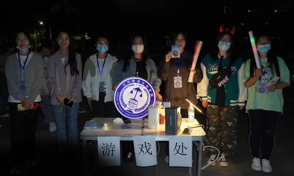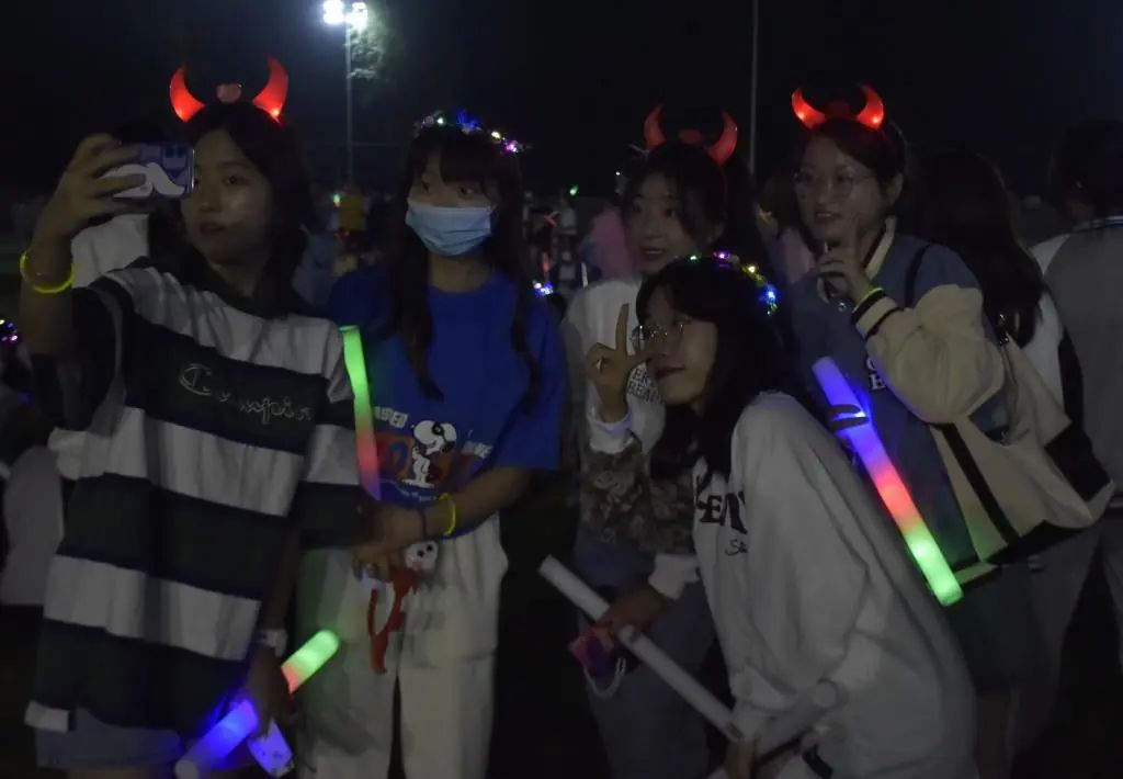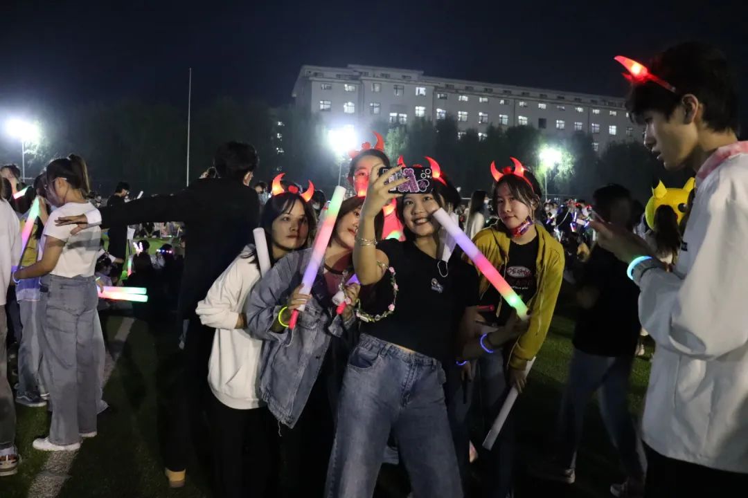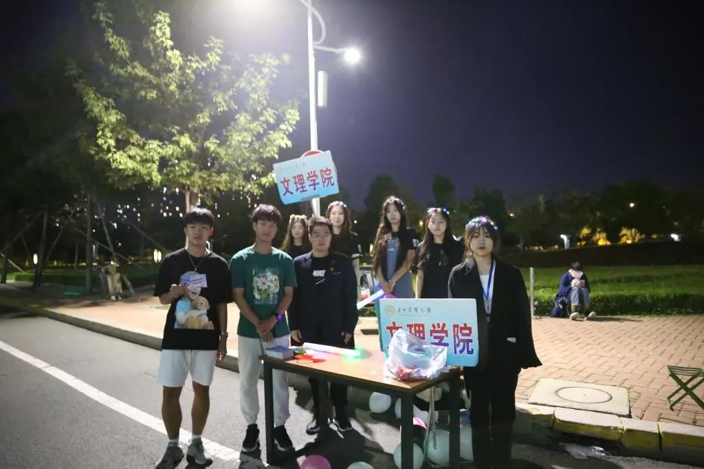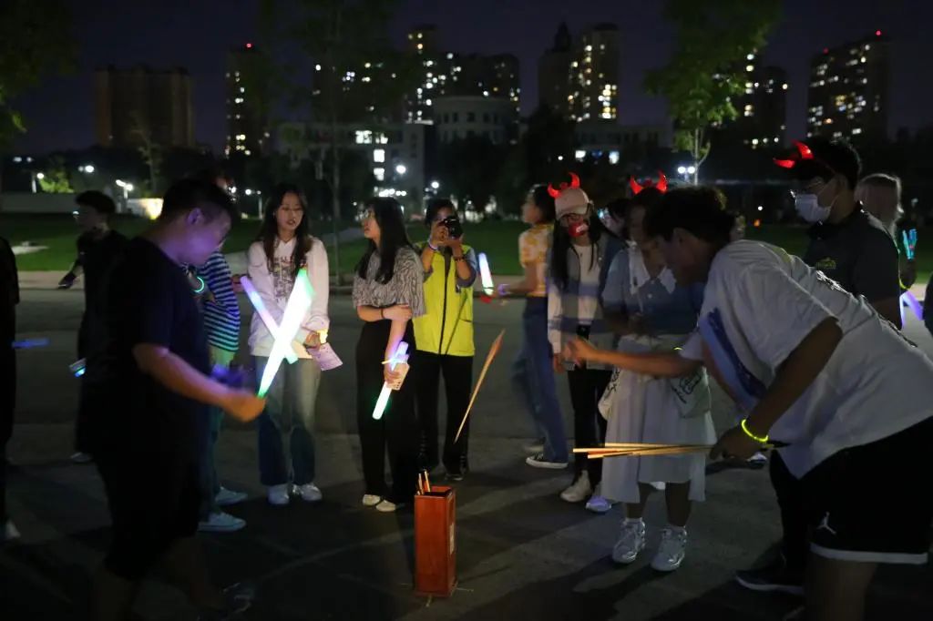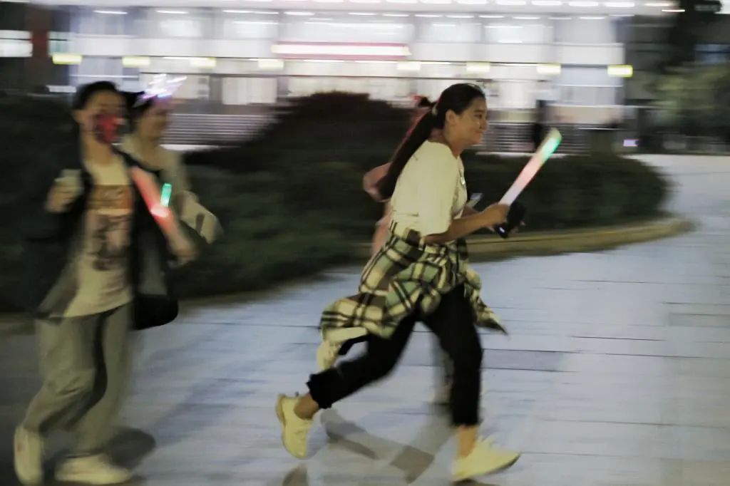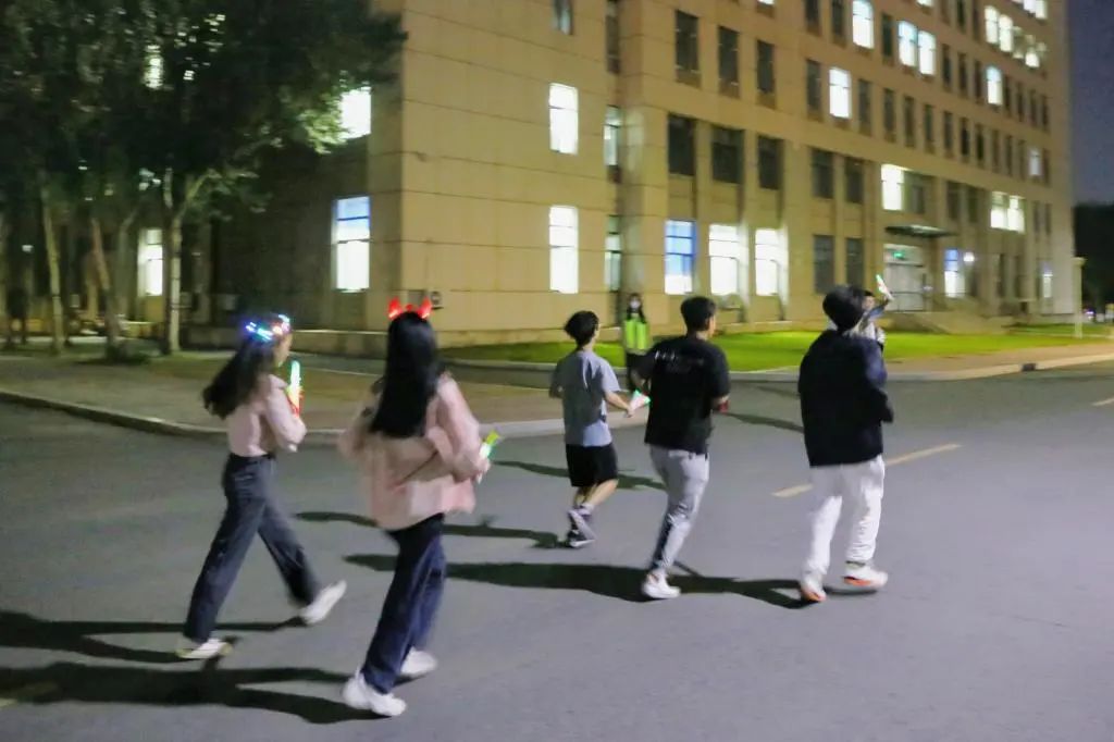 为丰富荧光夜跑活动的趣味性,活动过程中还增加了隐藏随机游戏环节,全校16个学院分别设置了学院游戏点,设置丰富多样的趣味游戏,完成游戏的小组不仅可以获得下一站点的“通关秘籍”,还可以获得各学院定制纪念品,同学们参与热情极大,沿途众多学生驻足观看。