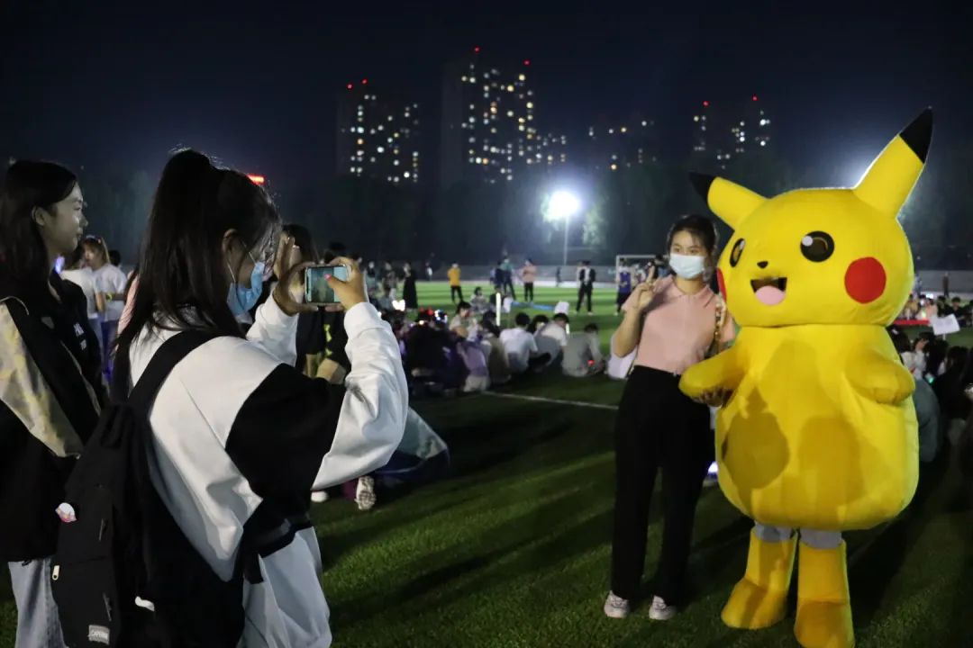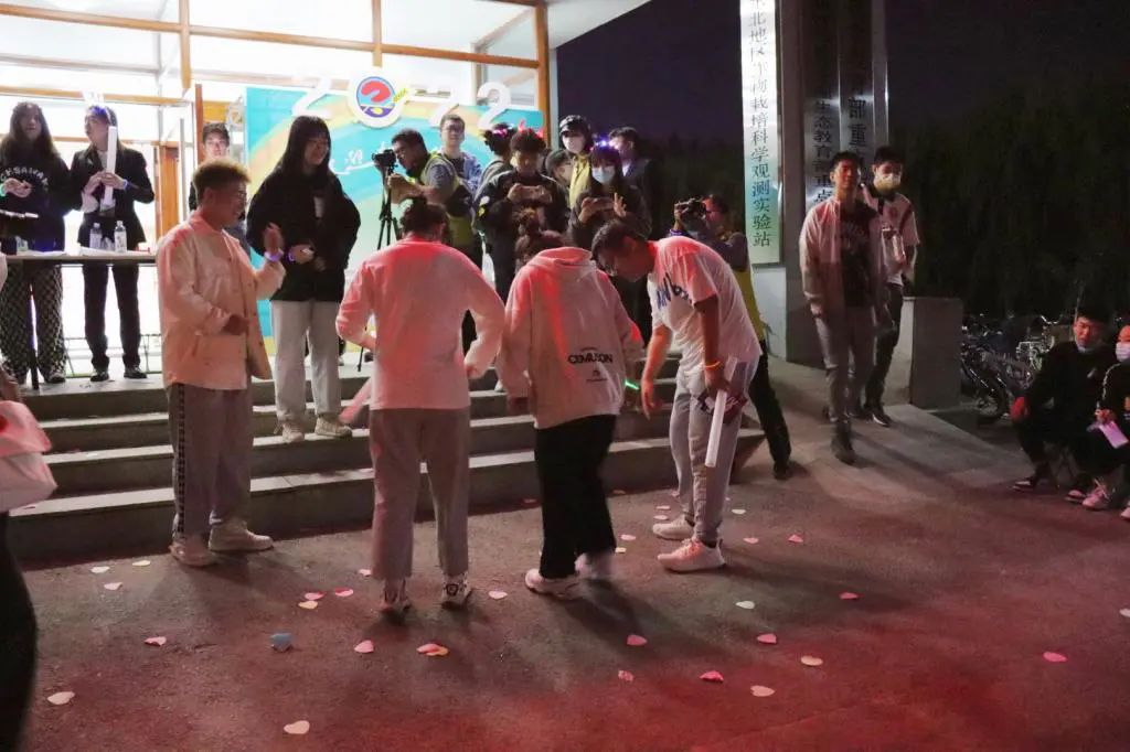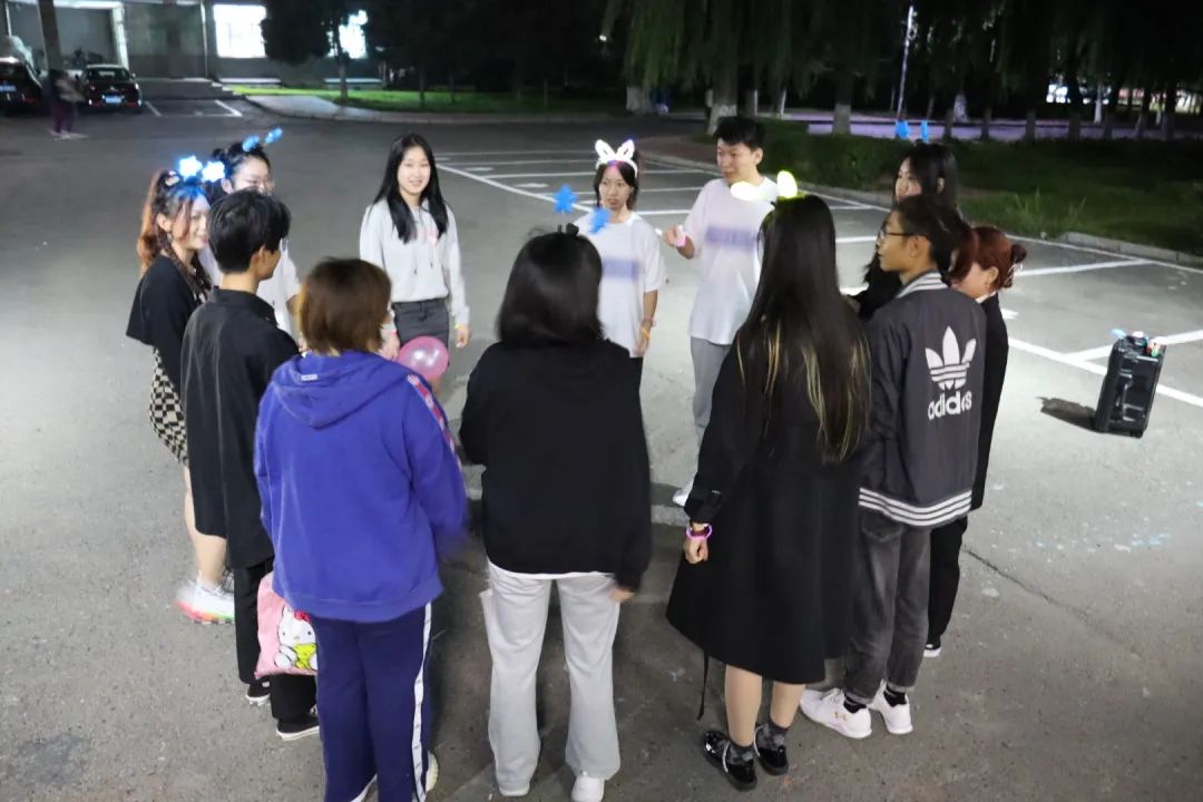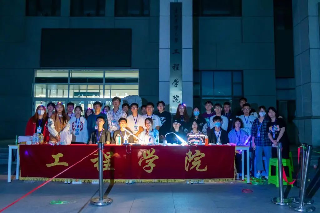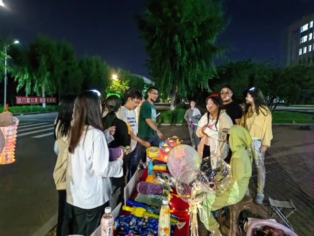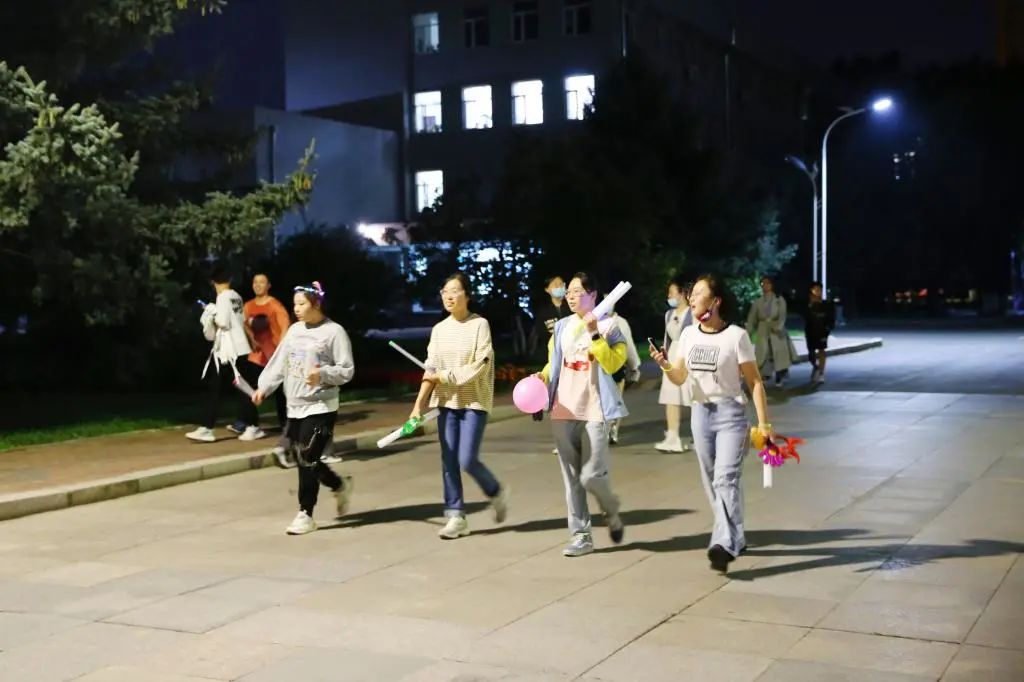 为丰富荧光夜跑活动的趣味性,活动过程中还增加了隐藏随机游戏环节,全校16个学院分别设置了学院游戏点,设置丰富多样的趣味游戏,完成游戏的小组不仅可以获得下一站点的“通关秘籍”,还可以获得各学院定制纪念品,同学们参与热情极大,沿途众多学生驻足观看。