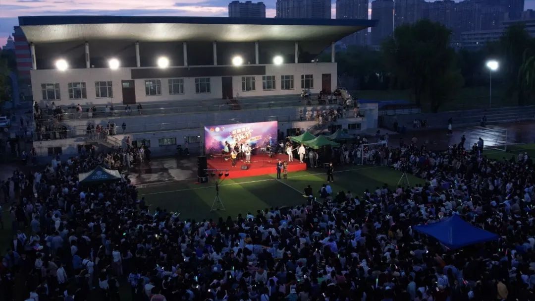 初春约定,仲夏赴约。5月13日晚,由校团委主办,校学生社团联合会承办的“声入人心,舞动青春”草坪音乐节在南区体育场举办,2000余师生在夕阳晚照的草坪上席地而坐,手中挥舞着荧光棒,和着旋律一起摇摆,在音乐中感受生机盎然的青春……
