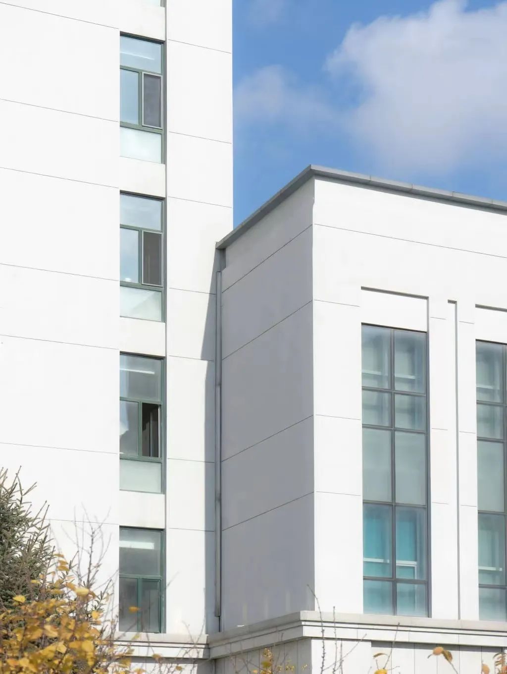 洁白楼宇与明澈天空相接