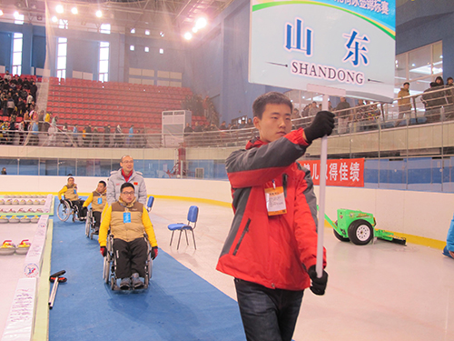 4日早上8点,我校志愿者到达北大荒国际饭店,协助残疾人运动员上车,随即前往开幕式现场。8时45分,伴随着激昂的运动员进行曲,来自北京、上海等地的9支代表队的运动员、教练员在我校志愿者的带领下入场。接着,黑龙江省残疾人联合会宣传部部长于洪涛宣布首届全国残疾人轮椅冰壶锦标赛开幕式正式开始,全体庄严起立,合唱国歌。开幕式中,黑龙江省残疾人联合会党组书记何玉华、黑龙江省体育局副局长李峰、哈尔滨体育学院副院长周霄文致辞,向各地到来的运动员表示欢迎,强调了冰壶锦标赛的意义,并预祝首届全国残疾人轮椅冰壶锦标赛取得圆满成功。随后,运动员代表、裁判员代表和教练员代表依次宣誓,保证将在赛事中全力以赴,公平竞赛。最后,黑龙江省残疾人联合会党组书记何玉华宣布首届全国残疾人轮椅冰壶锦标赛正式开始。至此,开幕式圆满结束。