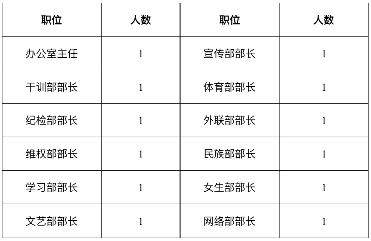 通过资格审查的学生干部将进行公开竞聘,校学生会部长公开竞聘以竞聘演讲的方式,按照岗位职数1:1的比例,差额选举产生后备人选。