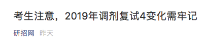2019年全国硕士研究生招生调剂服务系统将于3月20日至4月30日开通。研招网官微发文提醒《调剂复试4变化》,一起来注意!
