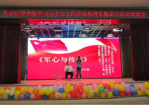 为进一步引导青年学生认真学习贯彻习近平总书记讲话精神,贯彻落实《共青团中央关于认真学习宣传贯彻习近平总书记在纪念五四运动100周年大会上重要讲话精神的通知》要求,生命科学学院团委于5月15日,在大学生活动中心举行“青春心向党 建功新时代”学习习近平总书记在纪念五四运动100周年大会上的重要讲话精神主题团日活动评选会。校团委吕嘉昌,生命科学学院团委书记孙珠红,2017级辅导员吉彪,来自兄弟学院的团委副书记以及学院2017级全体同学和2018级团干部参加活动。