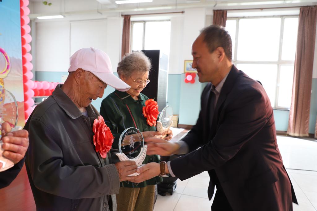 随后,校领导为在校工作70年整的耄耋老人颁发光荣印章并为寿星代表们献寿盘。马宏坤与寿星代表一同切蛋糕,一起分享生日的甜蜜和快乐,分享生命绽放的美丽,祝愿老寿星们晚年幸福,福寿绵长。