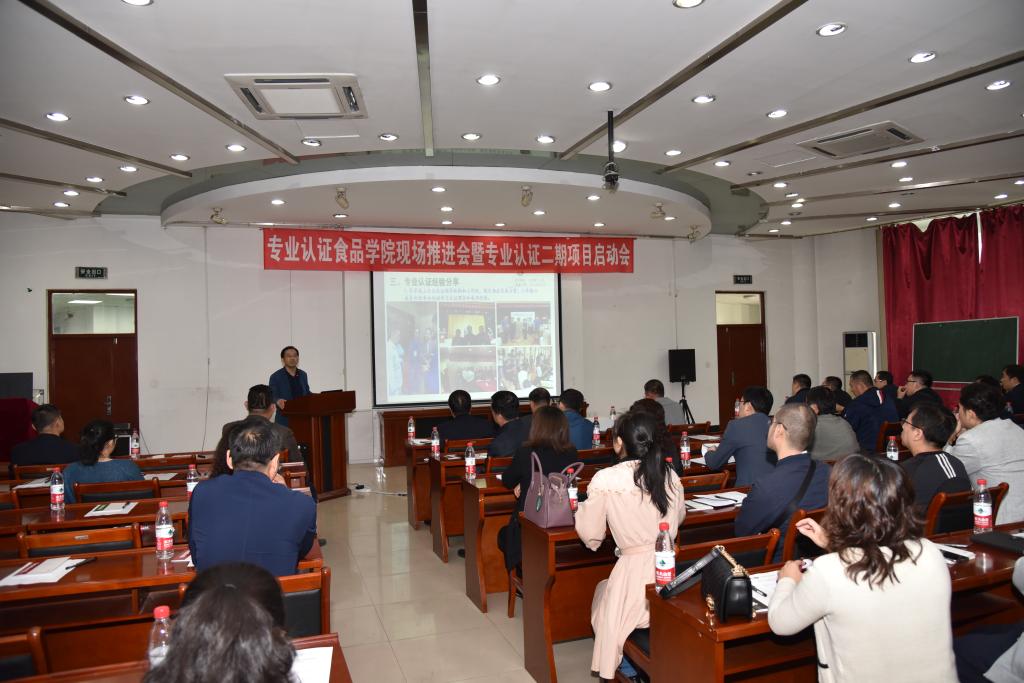 为深入推进学校专业认证工作, 5月14日上午,我校在食品学院召开专业认证食品学院现场推进会暨专业认证二期项目启动会,副校长李伟凯,教务处、教学质量评估中心、计财处、人事处、实验室管理处、招生与就业指导处、学工处、校团委、图书馆、现代教育技术与信息中心主要负责人,各学院(部)分管教学工作副院长,第一期、第二期启动认证的17个专业的专业负责人及部分骨干教师参加了会议。