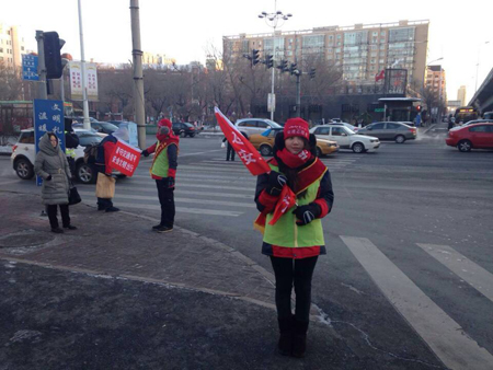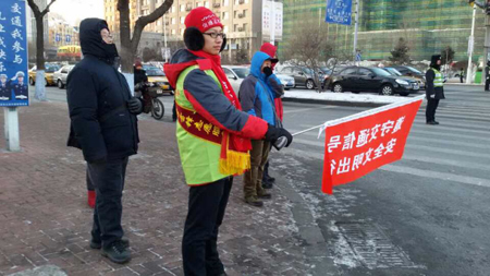 配合开展创城迎检志愿服务期间,我校志愿者负责在和平路与民生路、中山路与六顺街、中山路与珠江路、和平路与文府街交叉路口开展交通协管行动,劝解中国式过马路现象。每天早7点至9点、下午4点至6点,我校志愿者轮班上岗,保证志愿期间无缺岗现象,尽全力做好哈尔滨迎检工作。天气寒冷,志愿者们坚守岗位,以实际行动践行志愿者精神,维护哈尔滨文明城市形象。期间,我校团委副书记崔丽、校团委老师高鹏亲临志愿服务现场,鼓励同学们认真踏实做好志愿服务,让青年志愿服务成为城市文明亮丽的风景线。我校中山路与珠江路路道口岗位以良好的志愿服务表现圆满完成任务,获得了香坊区相关部门负责人的表扬。