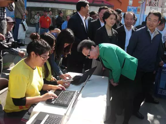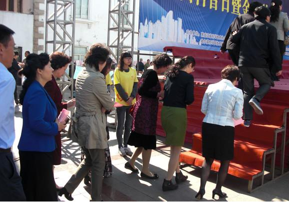 仪式开始后,志愿者们分工明确,一部分志愿者在各街道办事处前举牌进行指示引导工作,一部分则负责微信有奖答题活动与现场观众互动,从而达到扩大活动影响的目的。整个过程志愿者们保持了精神的高度集中,使现场秩序有条不紊。在欣赏了一些精彩的歌舞表演之后,各领导和各优秀代表走上舞台,由黑龙江省副省长孙尧宣布全国科普日暨金秋科普月活动正式启动,在颁发了全国科普示范社区等奖项后,活动进入了科普作品展示参观阶段。期间,马淑洁主席同我校志愿者进行了亲切的交谈。参观结束后,领导们与我校学生拍摄了合影,启动仪式也接近了尾声。