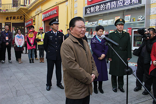 上午9时左右,黑龙江省119消防宣传日主题教育活动在哈尔滨市中央大街隆重举行。东北农业大学消防志愿者统一身着消防志愿者服装,佩戴工作证,有序进入活动现场。活动开始后,黑龙江副省长孙永波首先在大学生志愿者的讲解下,听取了哈尔滨市消防安全宣传工作的部署情况,详细询问了活动开展细节。随后孙永波在志愿者的带领下来到中央大街消防志愿者服务站慰问志愿者们。孙永波发表了消防安全工作动员讲话,他提出,消防工作责任重大、意义重大,希望社会各方全力做好消防安全宣传工作。孙永波还向全体志愿者表示感谢,并预祝今年消防宣传工作取得良好成绩。最后,全体志愿者在东北农业大学青年志愿者协会主席张家荣的带领下,齐声喊出今年消防日主题口号“找火灾隐患,保家庭平安”。11点左右,119宣传日主题教育活动圆满结束,东北农业大学全体消防志愿者合影留念。