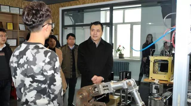 在创客空间的研究生支教团党支部工作室,李豪岩听取了研究生支教团党支部书记、校团委学生副书记王琳关于党支部通过网络与西藏昌都市、新疆福海县、贵州龙里县三个支教服务地党小组开展“两学一做”学习教育的工作汇报。李豪岩对我校重视研究生支教团骨干返校后续培养工作做法表示充分肯定,鼓励研究生支教团党支部成员继续发挥所长,在大学生创新创业工作中创先争优作表率。