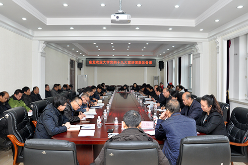 党的十九大是在全面建成小康社会决胜阶段、中国特色社会主义进入新时代的关键时期召开的一次十分重要的大会。深入学习宣传贯彻党的十九大精神,把全校师生的思想统一到党的十九大精神上来,把力量凝聚到党的十九大确定的各项任务上来,不断推进学校双一流建设和教育内涵式发展,是我校当前和今后一个时期首要的政治任务。为学习宣传贯彻好党的十九大精神,我校成立了党的十九大精神宣讲团。本次宣讲采取统一讲稿、统一备课的形式,将宣讲团分为八组,每组由一名校领导担任组长,各党务部门负责人,各党委、总支书记,省高校党的十九大精神宣讲团成员和马克思主义学院部分教师担任组员,将于2017年12月至2018年1月面向全校师生陆续开展宣讲活动。
