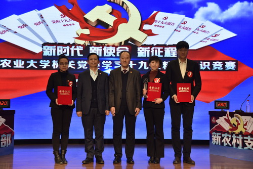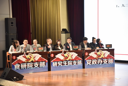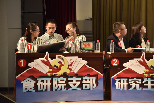 决赛共分为个人必答题、团队必答题、题板题、抢答题和风险题。参赛各位选手准备充分、思路敏锐、条理清晰,比赛现场气氛热烈,比赛环节激烈紧凑。最终,党政办支部获得一等奖,组织人事支部、新农村发展研究院支部获得二等奖,研究生院支部、国资处支部、食研院支部获得三等奖。