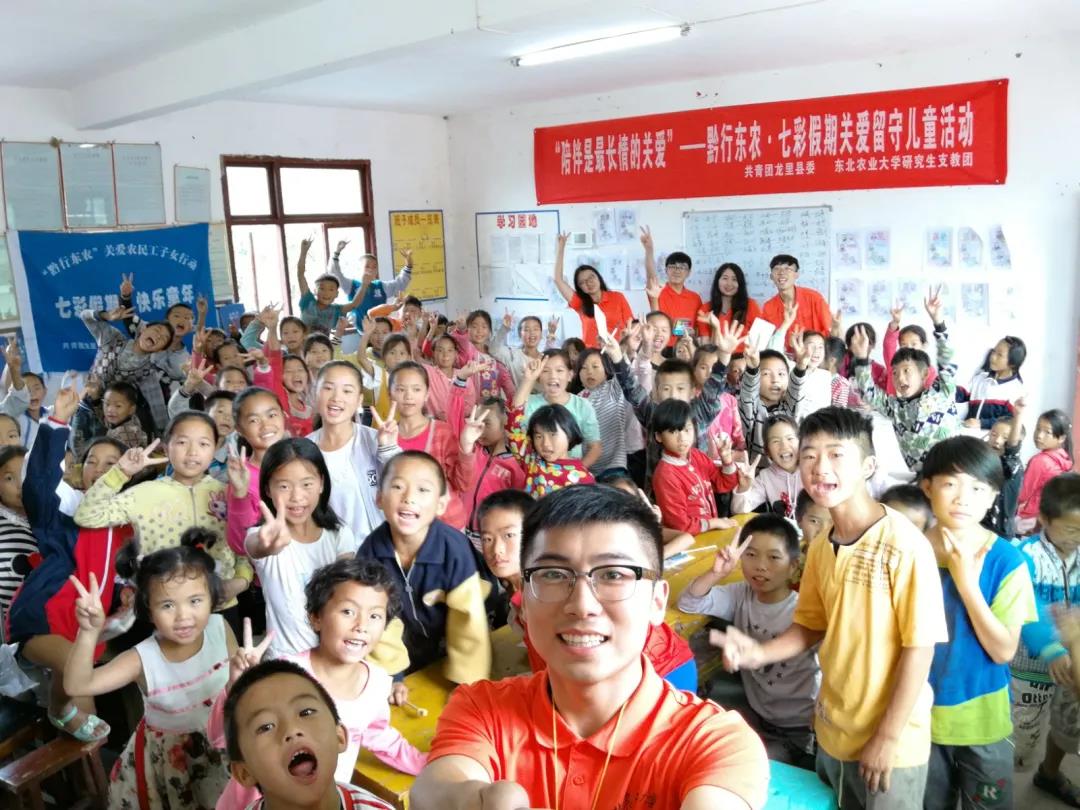 东北农业大学研究生支教团坚定不移以创建创新志愿服务品牌项目作为工作目标,不断努力将志愿服务活动常态化、项目化、品牌化,围绕一条主线、两个侧重,积极开展志愿服务工作。即以扎根基层、服务学生、关爱留守儿童为工作主线,以思想引领与关爱服务相结合、集中学习与长效辐射相结合为侧重点,形成了队内协同配合、队外不断辐射,吸引更多青年志愿者共同参与东农研支团志愿服务项目的工作态势,将志愿活动持续为项目,将志愿项目发展为品牌的工作格局。仅贵州龙里服务队在七年间累计开展志愿服务活动700余次,累计受益人数20000余人。贵州服务地志愿者针对当地农民工子女、留守儿童身心教育匮乏的现状,开展了“一城一名悦中国”、“心幕象牙塔”、“蓓蕾守护·关爱留守女童”等主题关爱留守行动,拓宽留守儿童视野,帮助留守儿童树立正确的人生观、价值观。