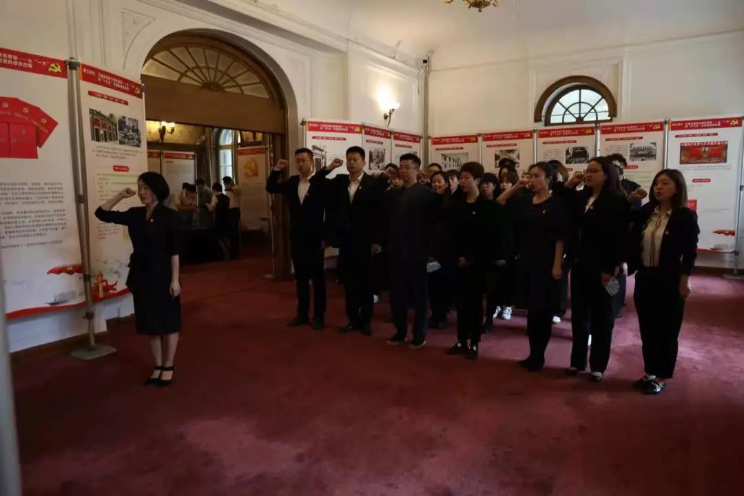 最后在纪念馆宣誓厅,全体党员共同面向党旗,举起右拳,重温入党誓词,坚定初心担使命,在庄严、厚重的氛围下再一次表达了自觉继承革命传统、传承红色基因的坚定信念和决心。