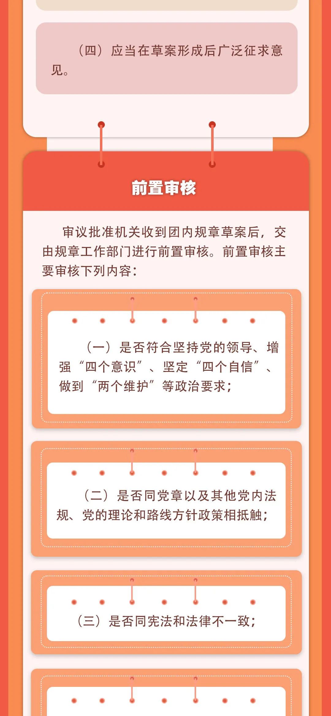各级团组织要落实全面从严治党、全面从严治团各项要求,加强统筹、规范程序,切实抓好团内规章建设工作。