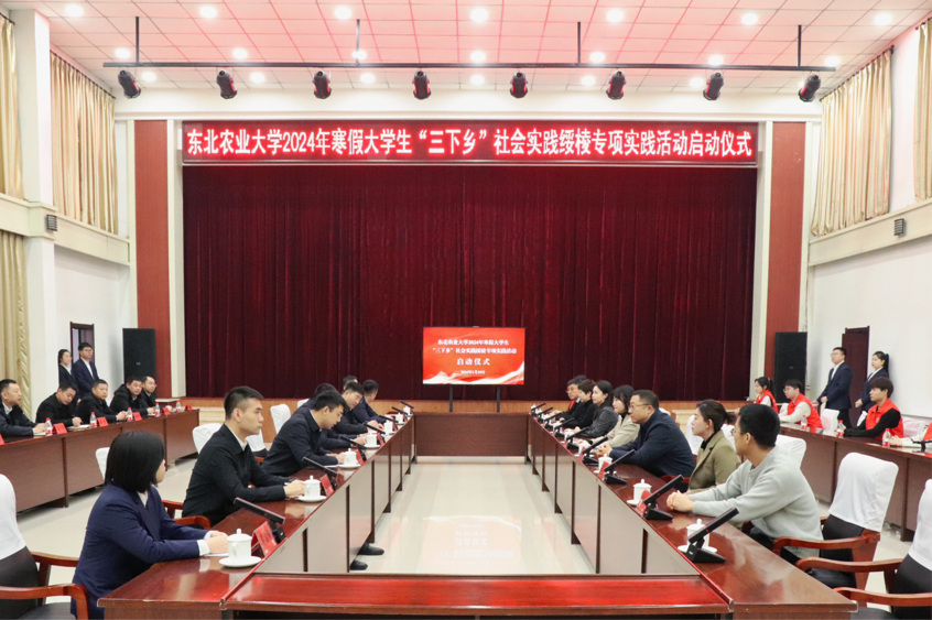 校团委副书记焦文静介绍了我校2024年寒假大学生“三下乡”社会实践绥棱专项实践活动情况,对绥棱县委县政府给予我校大学生社会实践活动的大力支持和帮助表示感谢。她说,绥棱专项活动既是我校学生参与社会实践的良好平台,也是为绥棱县农业、科技、电商赋能的实践契机。同时,她对东农社会实践团队提出了工作要求,实践团队师生要发挥学科优势,学会“自找苦吃”,将课堂所学与乡村实践紧密融合,弘扬“艰苦奋斗,自强不息”的东农精神,努力为推动乡村振兴注入强大的青春动能,积极为龙江的高质量发展,可持续振兴汇聚青春力量。