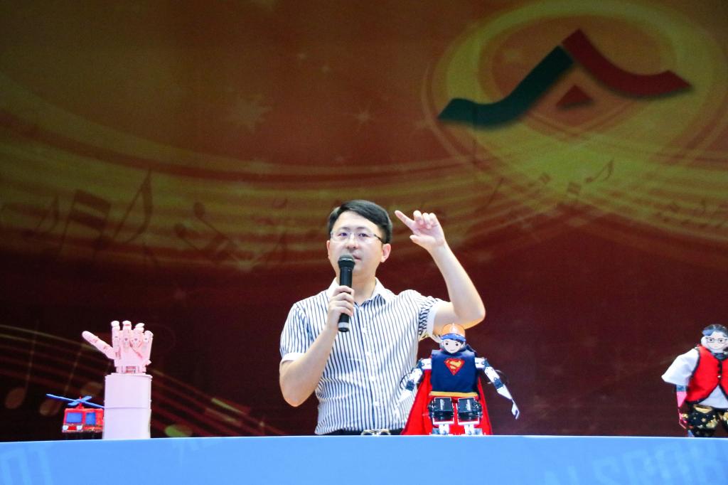 活动开始前,哈尔滨奥松机器人公司为营员们带来了精彩的机器人舞蹈表演。舞蹈结束后,本次活动正式开始。哈尔滨工程大学机电工程工学硕士、“机器人爸爸”于欣龙上台为大家普及了机器人的相关知识,全体营员仔细聆听并认真记录了老师所教授的重点内容。