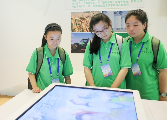 首先营员们来到综合服务区,讲解员为大家介绍了黑龙江省著名绿色食品企业和绿色食品独有的优势。