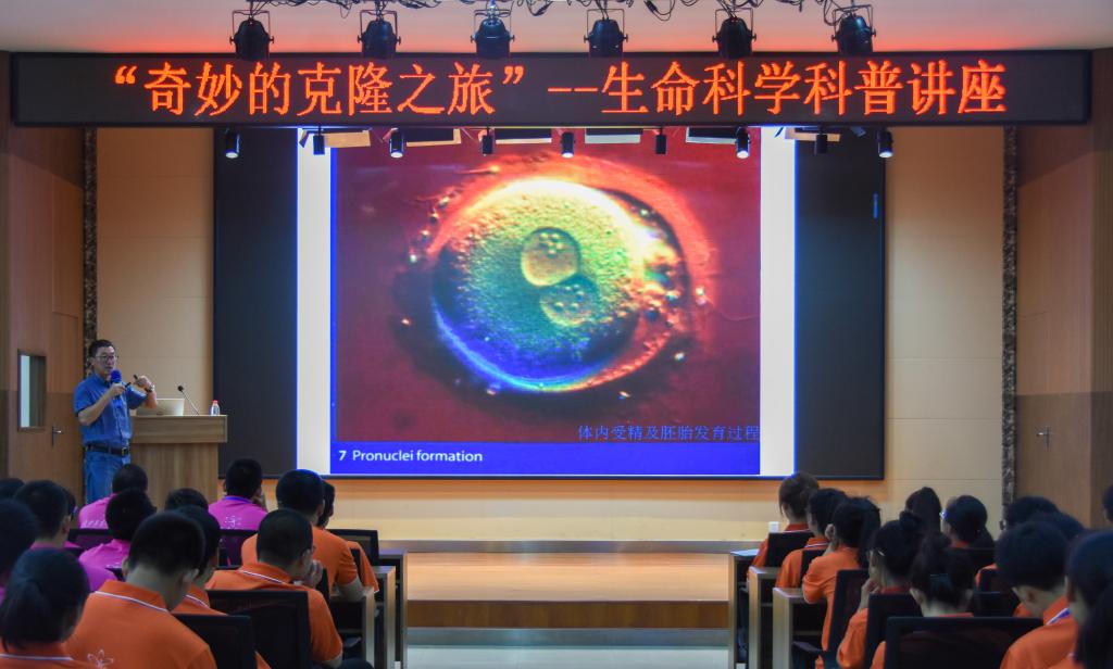 随后,刘教授为大家详细讲解了胚胎细胞的发育过程、胚胎干细胞的相关知识,还用动态图片为大家展示了ES细胞的全能性。同学们全程认真聆听,潜心学习并积极与教授进行互动,现场气氛轻松活泼。