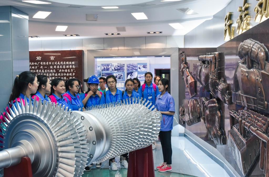 参观过程中,工作人员为营员们讲解了传统叶片的加工工艺,并为大家介绍了多位省级、国家级劳动模范。工作人员的语气中,透露出身为哈汽人的骄傲。