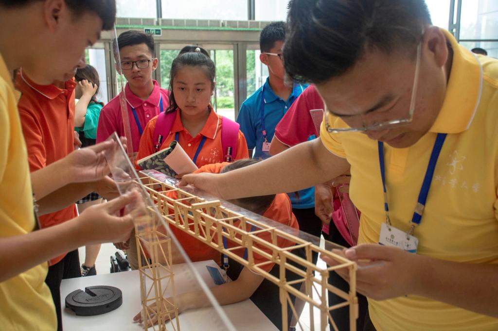 在科学营期间,营员们除了参观校内外的科技展览,同时还进行了许多团队活动:丰富多彩的破冰之旅用游戏连接彼此,逐渐熟悉;紧张刺激的龙门起重机模型比赛中各小组团结协作,为荣誉而战;趣味运动会使大家建立信任,达成默契;座谈会上互相交流心得,分享感动……一次次活动的磨合,使营员之间彼此熟悉,互相帮助。