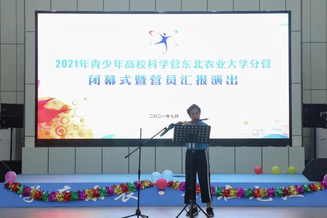 7月27日晚,科学营闭营式暨营员汇报演出在我校梦想小镇连廊大厅举行。闭营式上,营员们回忆一周以来的学习实践成果,带队教师代表张海瀛和营员代表王娆进行发言,分享了参营感受,对我校提供的科学之旅表达了感谢。随后进行了营员汇报演出。