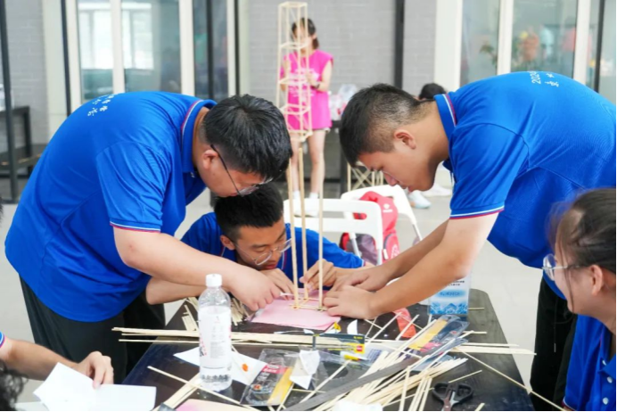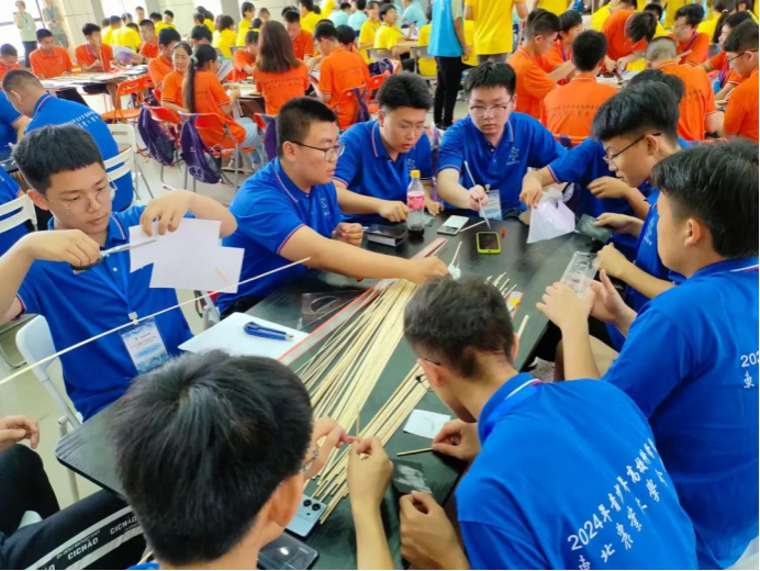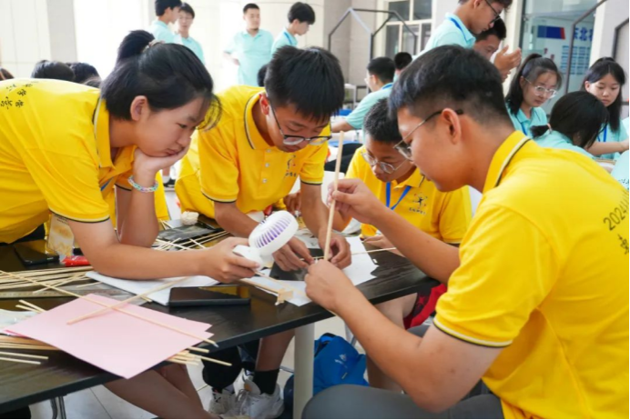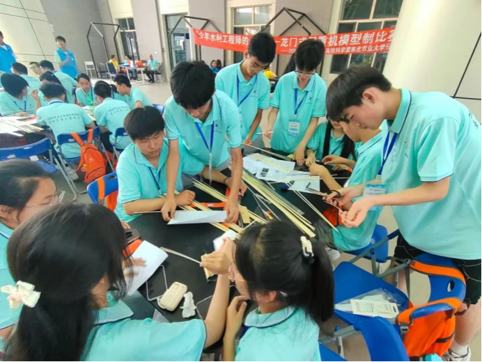 24日下午,龙门式起重机模型制作比赛在梦想小镇大厅举行。水利与土木工程学院教师王洪涛与水利与土木工程学院学生李秋泽指导营员们分组进行模型制作,志愿者协助确保活动顺利进行。此次活动妙趣横生、学乐结合,全面展现我校水利专业在学术研究、科技创新领域的独特之处,有力地增强了营员们的实践操作能力和创新思维能力。