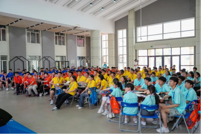 在结束了一天的实践体验后,营员们齐聚体育馆开启趣味运动会。通过分组合作的方式,营员们积极完成比赛项目,展现出强烈的集体荣誉感与团队精神。在这一天充实而精彩的活动中,营员们不仅收获了知识和快乐,更在团队协作中锻炼了自己,为接下来的科学探索之旅注入了满满的活力与激情。