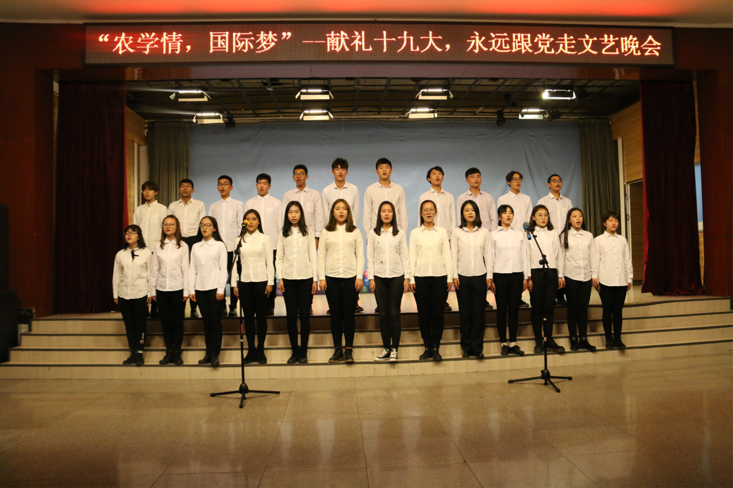 晚会的第二部分,国际文化教育学院与农学院学生带来了歌曲《我爱你中国》,动听的歌喉和精彩的演绎征服了在场的所有观众;由国际学院新生带来的集体诗朗诵《你入我梦来》,表达强国梦里有你,强国梦里有我的伟大时代主题,将整场晚会推向了高潮。