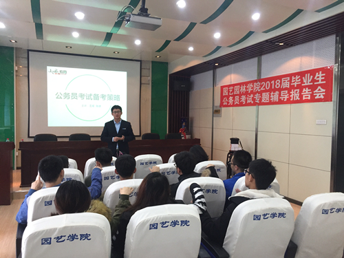 学院先后举办了2018届毕业生公务员考试辅导报告会、就业技能指导专题报告会和考研辅导专题讲座。公务员考试辅导报告由具有多年考试经验的老师担任主讲,对公务员考试的形式、内容及相关政策进行了解读,并重点讲解了如何备考笔试和面试技巧。
